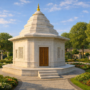 The Ashtavinayak Mandir is conceived as a serene spiritual space designed to house the eight sacred forms of Lord Ganesha within a unified architectural composition. The temple is planned as an octagonal structure, symbolically representing the eight directions and providing a dedicated sanctum for each of the eight Ganpati idols. This spatial arrangement creates a harmonious circumambulatory experience, allowing devotees to engage with each deity in a continuous and meditative sequence. Crafted entirely in Makrana marble, the temple reflects timeless craftsmanship and purity of material. The white marble enhances the sacred character of the space while offering durability and elegance. The architectural language is kept simple and dignified, allowing the geometry, materiality, and proportions to define the spiritual atmosphere. Set within a landscaped environment, the mandir is envisioned as a calm and contemplative focal point within the community, inviting devotees to experience devotion, reflection, and cultural continuity.